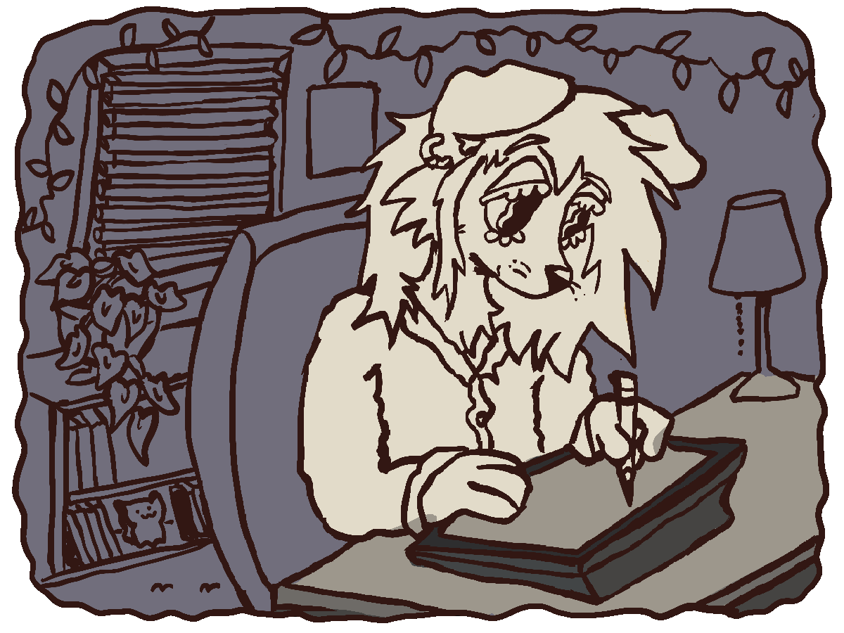 I am a constant emitting of light that lives in the computer and takes the shape of a coydog*, I am a nomad shaped by a kaleidoscope of experiences. Although my host-body is named Frances, he is 22, a butch, and an artist getting his degree in fine arts.What software do you use?